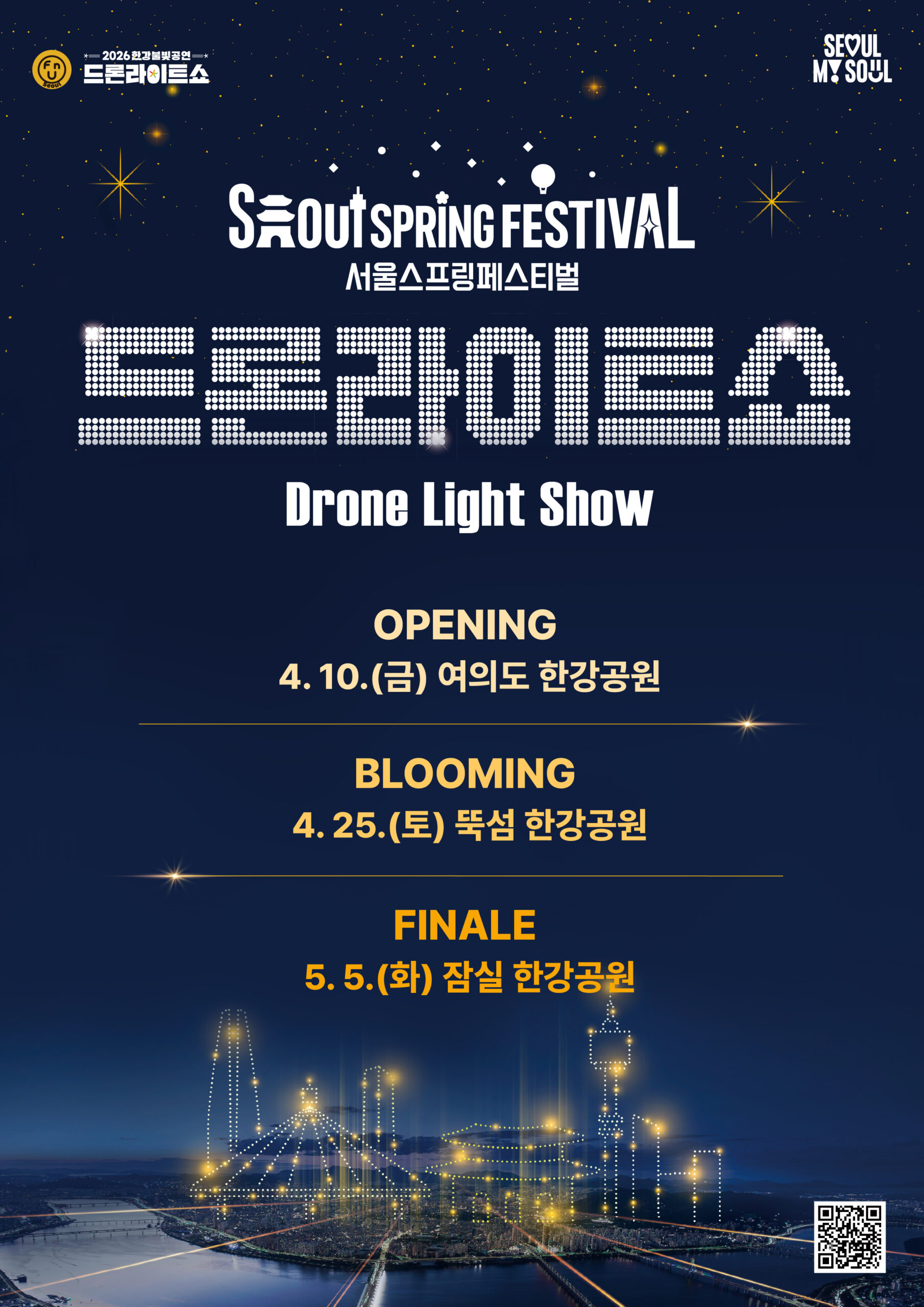 | 한강 드론라이트쇼 | 4.10, 4.25, 5.5, 5.16 | 여의도·뚝섬·잠실 | 무료 |